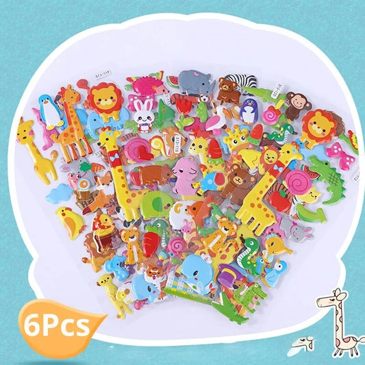 Stickers Pegatinas con Relieve Animales Dibujos Animados 6 Hojas