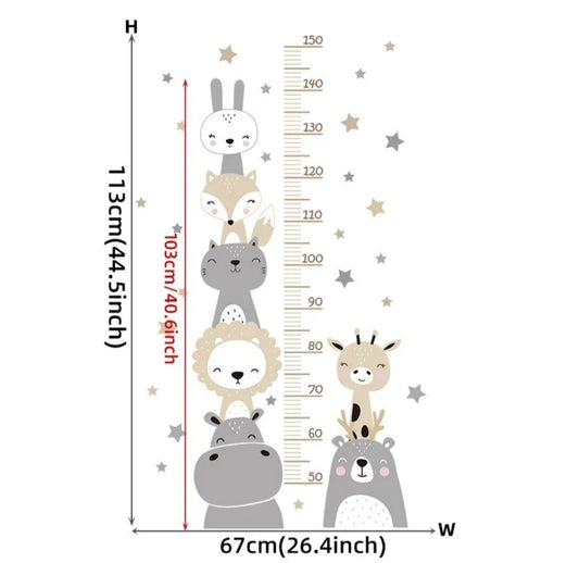 Sticker Vinilo Decorativo para la Pared Medición Altura Animales Unicos