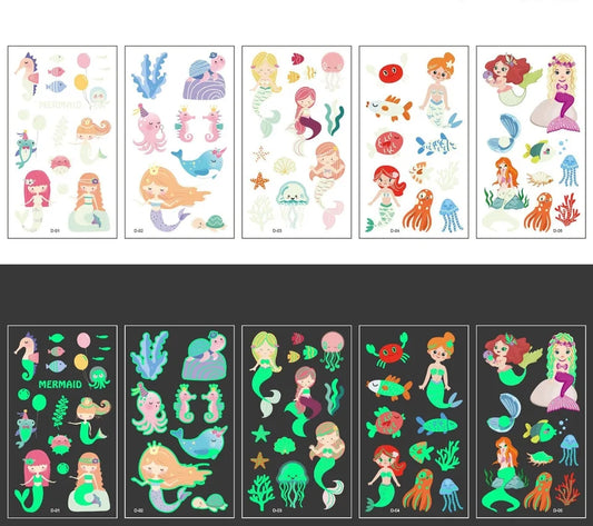 Stickers Pegatinas Tatuajes Luminosas Brillantes 15 Hojas Variadas Dinosaurios Sirenas Unicornios