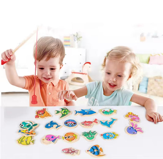 Juego de Pesca Milagrosa 2 Cañas Magneticas de Madera y 31 Peces