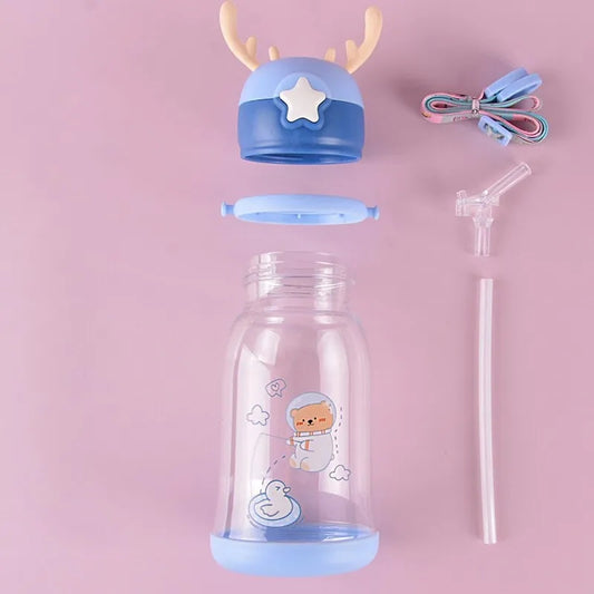 Botella Taza con Bombilla con Bola de Succión 350ml. Celeste