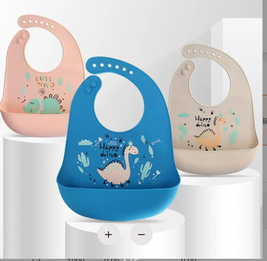Babero Impermeable de Silicona Dibujo Dinosaurio Gris