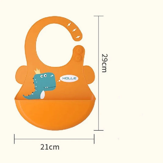Babero Impermeable de Silicona Suave Dinosaurio Naranjo