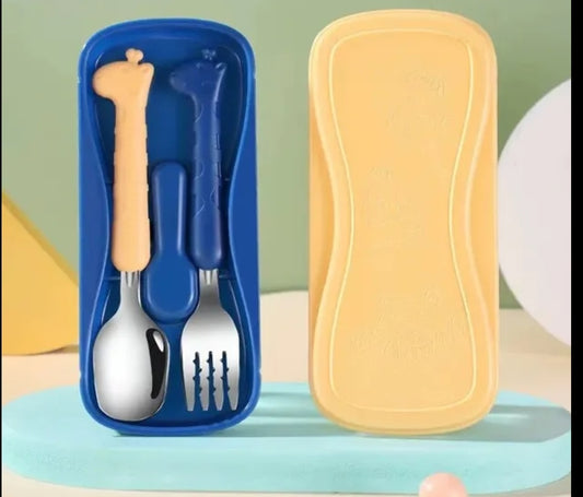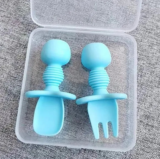 Set de Cubiertos de Silicona Tenedor y Cuchara Celeste