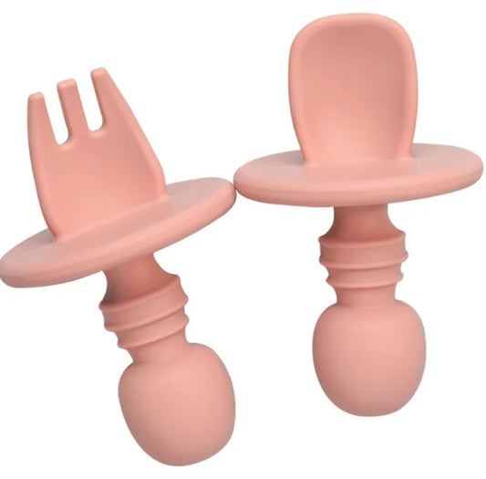 Set de Cubiertos de Silicona Tenedor y Cuchara Rosa